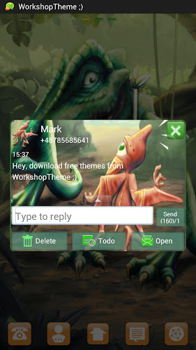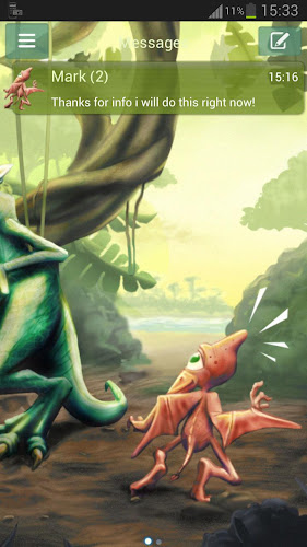 Dino Theme GO SMS Pro toto nové téma pro populární GO SMS PRO, pokud nechcete mít na svém telefonu jej zdarma stáhnout z Google Play.V dobách velmi dávné Země, převažovaly obří dinosauři. Před více než 200 miliony let, Země byla pokryta obrovskými kapradiny, cykasy, přesličky a stromů jehličnanů, které byly úkryt z menších plazů. Dinosaur - název pochází z řeckého slova "děsivý" a ještěrky Dinosauři žili za 150 milionů let na Zemi. Což představuje téměř tisíc druhů. Malé i velké, agresivní dravci a mírné býložravci a dokonce i létající vzduchem. Po miliony let, každý druh vyvinul přizpůsobit se prostředí pozdního triasu, Jurassic a křídové. Náhle vymřeli.