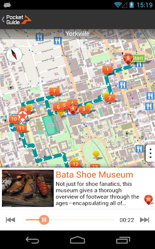 PocketGuide, přední světová aplikace Audio City Guide, vám dává zájezdy hlasem a odhaluje nejlepší příběhy, zasvěcené hangouty a památky, které musíte vidět v téměř 100 hlavních městech a turistických destinacích. Aplikace určuje vaši polohu a záznam vašeho osobního průvodce popisuje, kde jste - nemusíte se dotýkat telefonu ani číst z obrazovky. Všechny zájezdy jsou vyvíjeny místními odborníky, kteří znají svá města uvnitř a ven. Můžete si vybrat z různých tematických zájezdů, nebo jen bloudit po městě a nechat kapesník, který vás informuje, když je poblíž zajímavý web. Aplikace může také zaznamenat váš výlet: Jedním kliknutím můžete vytvořit úžasné 3D video z památek, které vidíte na svých cestách. Online, ale to znamená, že budete muset zaplatit poplatky za roaming. Pokud platíte za stažení zájezdů, můžete je použít offline a ušetřit náklady na roaming. Za stahování funkcí offline účtujeme malý poplatek, protože musíme uhradit průvodci a pokrýt naše vývojové náklady. Mezi další funkce, které můžete získat zdarma, patří mapa, která funguje offline a bezplatné použití 3D turné. Určitě vidíte nejzajímavější místa.• Zvukové prohlídky - provede vás s jasnými zvukovými narážkami a jakmile se přiblížíte k pohledu, automaticky vám o tom začne vyprávět