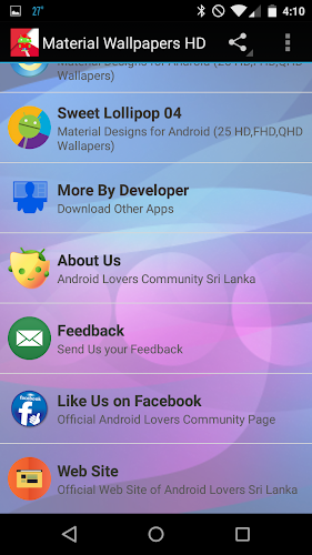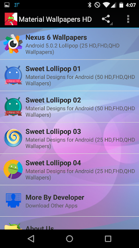 Tato aplikace obsahuje 175 tapet ve stylu designu materiálu v HD, FHD a AMP; qhd