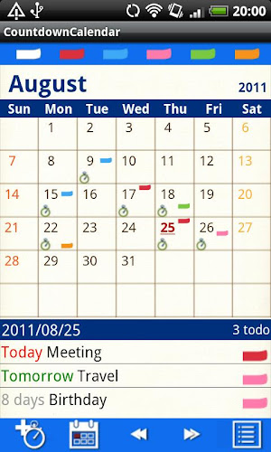 Nejen, že můžete uložit datum splatnosti projektu, ale také cestovat, prezentace, obchodní výlet nebo památku atd. Pro každý toDo si můžete vybrat barvu Post-IT a přepněte kalendář podle barvy.