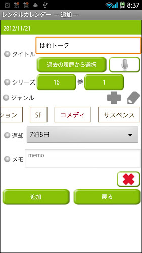 velmi jednoduché uložení titulu, sezóny, kategorie a data vrácení.