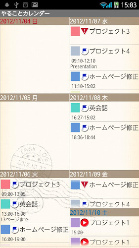 Zobrazit až 5 úloh každý den! Uloženy úkoly a pracovní doba jsou zobrazeny v časové ose níže v kalendáři! Drag and pohybují ve všech směrech!
