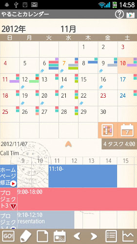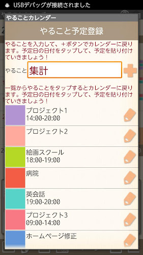 2. 「Task Schedule Edit」: Uložte úkoly a držet barvu úkolu k datu. Upravit barvy pozadí a poznámky atd ... s tlačítkem tužkou.