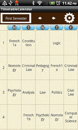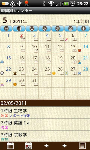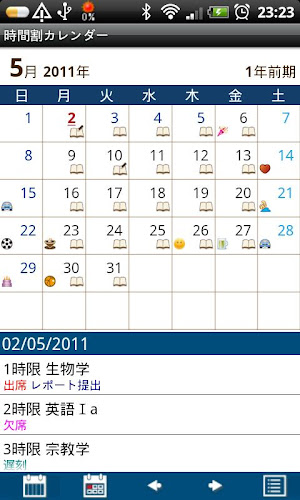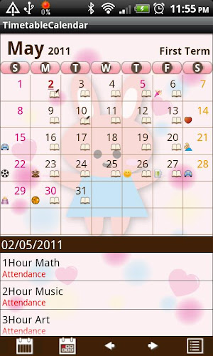po uložení rozvrhu a následném návratu do kalendáře můžete vidět obsah rozvrhu zobrazený v níže uvedeném seznamu kalendáře. klepněte na každý uložený předmět v seznamu a poté vyberte a uložte „docházka“, „nepřítomnost“, „zpoždění“, „přestávka“ a poznámka. tyto uložené informace se zobrazí v seznamu kalendáře, takže v kalendáři uvidíte vše v jednom zobrazení.