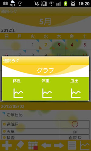 Hmotnost, krevní tlak, tělesná teplota může být každý den zaregistrováni, můžete vidět změnu zobrazení grafu.