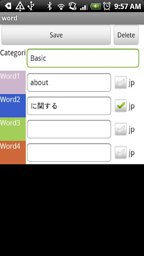 tlačítko slova:karta flash vzhledem k vybranému slovu
