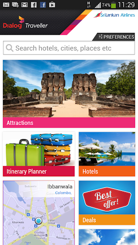 Dveře do Paradise Isle!Dialog Traveler je konečný průvodce, pokud chcete prozkoumat Srí Lanku. Prostřednictvím aplikace Traveler App můžete prozkoumat nejzajímavější místa na Srí Lance, získat informace o místech, získat pokyny, provádět rezervaci hotelu, podívat se na nejlepší nabídky kolem vás, být aktualizována v dialogu Wi-Fi Hot Spots Blesite a další užitečné informace- Počasí a dokonce i lokalizační počasí. Seznam stránek přitažlivosti založených na poloze a každý web má popisný obsah své archeologické hodnoty, původu atd.…
