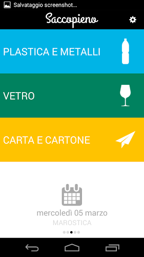 saccopieno, aplikace vám připomene, když vyprázdníte pytel na odpadky!saccopieno vás upozorní upozorněním den před sklizní a přesně vám řekne, kterou tašku nebo popelnici musíte z domu vynést.