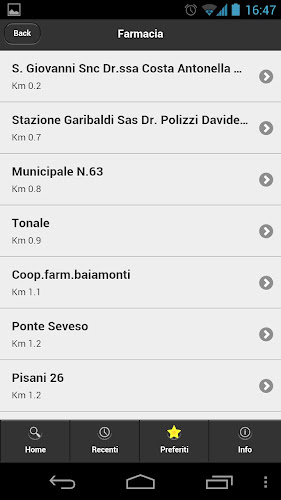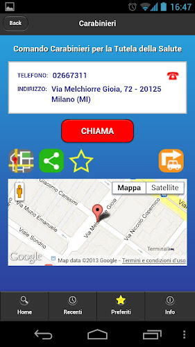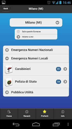 V placené verzi jsou přítomny kontakty nemocnic, Carabinieri, policie a všech místních nouzových a dopravních čísel.