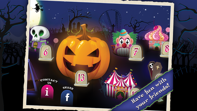 nemůžeš se dočkat, až přijde halloween? vžijte se do skutečného halloweenského ducha s kouzelným „halloweenským lunaparkem“, nejstrašidelnějším 13denním dobrodružstvím na halloween s 13 úžasnými aplikacemi, které můžete objevovat každý den, a plnými náročných a strašidelných miniher!jak to funguje:
