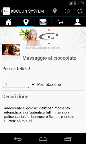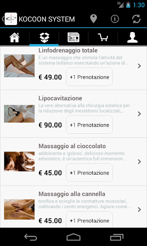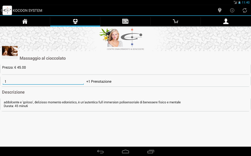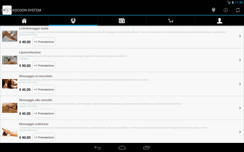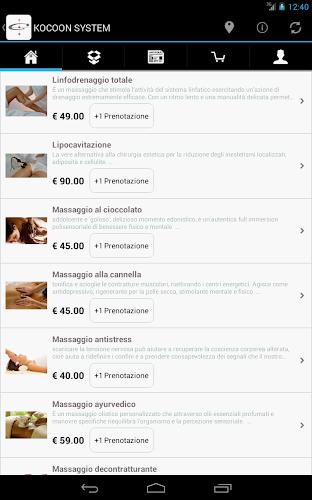 v kombinaci s barevnou terapií, vibrační masáží, aromaterapií a muzikoterapií je zážitkem čistá relaxace a aplikace benessere.caratteristiche: - zobrazuje články, ošetření a produkty na domovské stránce v popředí;