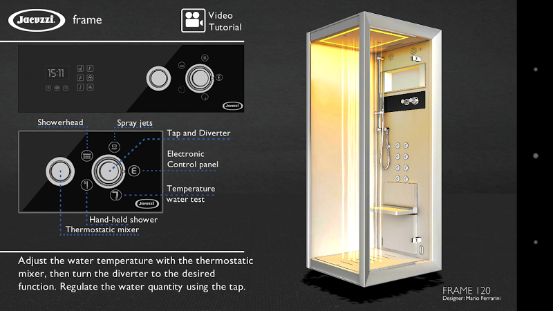 objevte a sledujte nový sprchový box vyvinutý společností jacuzzi.v aplikaci si otestujete spoustu funkcí, které jsou vytvořeny tak, abyste si užili a uvolnili své tělo.