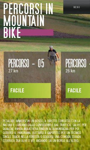 Každá trasa je doprovázena popisy, technickými detaily, nadmořskou výškou, silniční knihou, půdorysem s GPS Navigation Tracciato.Trovetete The Bike Section Reality, která vám prostřednictvím systému rozšířená realita poskytne šanci najít obrazovku, fotografii, a