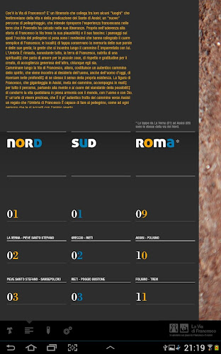 Způsob Francesco je itinerář, který spojuje některá místa, která svědčí o životě svatého Assisi. Nová pouťová trasa, která přepracovává františkánský zážitek v zemích, které chudý muž šlapal na jeho itineráty. Krajina, na které poutní oko spočívá, jsou stejná, která povzbuzovala jednoduché srdce Františka, lidé, se kterými se na cestě setkává, jsou s ním spojeni. Umbria zůstala, navzdory všemu, zemi Františka, vyživovaná spiritualitou, která hovoří o lásce k malým věcem; Procházka podél Via di Francesco pak představuje cestu ducha.V této aplikaci najdete