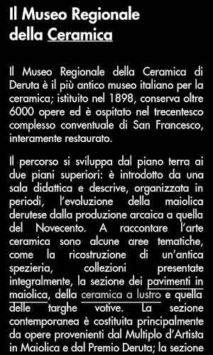 Regionální muzeum keramiky je nejstarším italským muzeem pro keramiku; Založena v roce 1898, zachovává si více než 6000 prací a je hostováno ve čtrnáctém konvenčním komplexu San Francesco, zcela obnoveno.