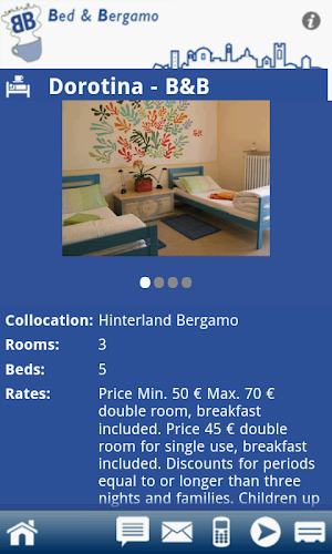 Analýza A Revize Aplikací Pro Android: Bed and Bergamo, Vyvinuté Společností TOPGRAF srl. Uvedeno V Kategorii Cestování A Místní Informace. Aktuální Verze Je 1.0, Aktualizována Na 02/08/2013 . Podle Recenzí Uživatelů Na Google Play: Bed and Bergamo. Dosaženo Více Než 100 Instalací. Bed and Bergamo Má V Současné Době Recenze 1, Průměrné Hodnocení 5.0 Hvězd