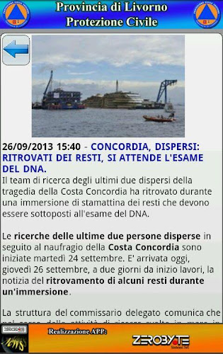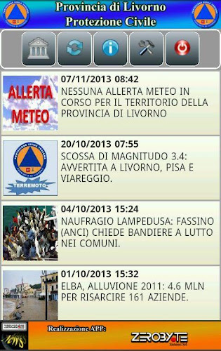Zprávy zobrazení aplikací - civilní ochrana provincie Livorno