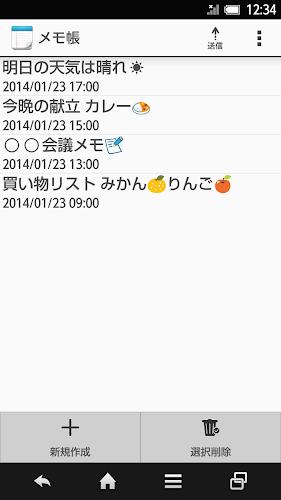 Jedná se o aplikaci Poznámkové telefony pro chytré telefony vytvořené společností Sharp. Podporuje také zadání emodži a registrované poznámky lze vložit do těla e -mailu, připojené k e -mailům nebo odeslány externě, což je velmi pohodlné.