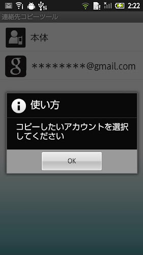 Jedná se o aplikaci, kterou chcete zkopírovat kontakty z zadaného účtu na jiný účet.(Tato aplikace je ostrý terminál vyhrazený Android 2.3) Kontakty Migrace pomocí počítače bude relativně snadná, ale kontaktuje přechod ze smartphonu čas a úsilí.
