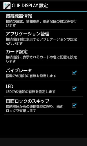 Tato aplikace umožňuje změnit aplikaci povolené / deaktivované, která běží na zobrazení WX03SH / CLIP, změnit nastavení, vibrace a LEDS atd. Podrobné použití