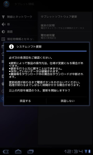 ■ Jedná se o aplikaci pro aktualizaci systémového softwaru v mediální tabletě „Galapagos“.Aktualizace systémového softwaru budete muset tuto aplikaci aktualizovat.