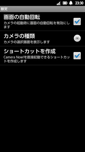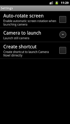a existují možnosti, jako je povolení automatické rotace obrazovky a vyberte vyberte fotoaparát, který se má spustit (stále nebo video).