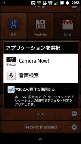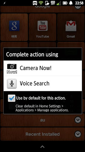 (prosím, vyberte si kameru hned teď! Na obrazovce výběru aplikace zobrazené dlouhým stisknutím tlačítka vyhledávání. Je to 1'st Pouze čas)