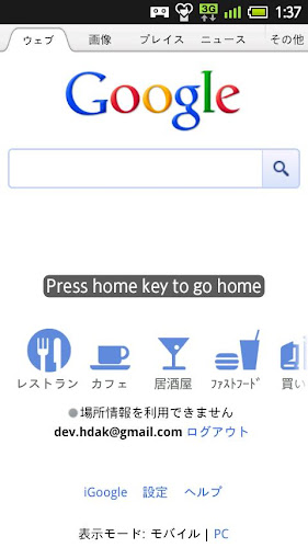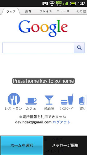 zabránit náhodnému provozu domácího klíče.Domov v klíči Poté, jakmile stiskněte pouze pro zobrazení zprávy, můžete se vrátit k aplikaci, která se použila těsně předtím stisknutím tlačítka zadní.