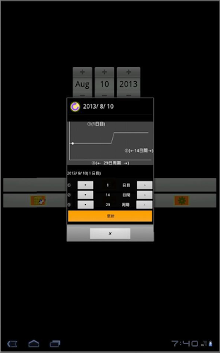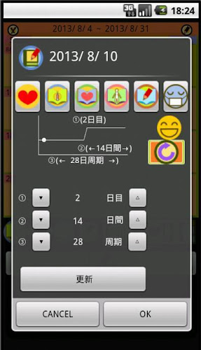 ※ pro nastavení času menstruačního cyklu stiskněte a nezapomeňte na tlačítko „aktualizovat“.