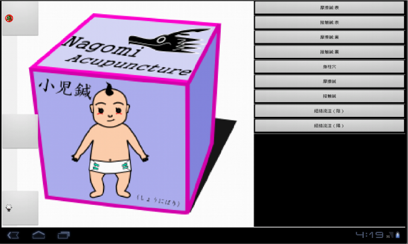 Analýza A Revize Aplikací Pro Android: Baby acupuncture, Vyvinuté Společností nagomi.aqu. Uvedeno V Kategorii Lékařství. Aktuální Verze Je 1.03, Aktualizována Na 06/06/2013 . Podle Recenzí Uživatelů Na Google Play: Baby acupuncture. Dosaženo Více Než 3 Tisíc Instalací. Baby acupuncture Má V Současné Době Recenze 6, Průměrné Hodnocení 4.2 Hvězd