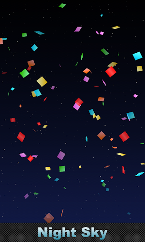 Je to živá tapeta, která má spoustu barevných konfet tančících. noční obloha, modrá obloha, zlato v pozadí, můžete rozptýlit živé barvy konfet během obrazovky. konfety barvy, tvar, rychlost pohybu, pohyb, pohyb, pohyb, směr,...