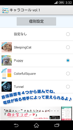Hovor s charakterem, insipid příchozí obrazovka smartphonu „barevná animace“ přizpůsobená “i aplikace !! Telefon je velmi netrpělivý ☆ ◆ Jak používat, jak jej používat k zahájení velmi snadného! Aplikace, nastavena pouze na oblíbenou animaci! Přečtěte si telefonní knihu, doporučeno ♪ I Roztomilá koťata a štěňata mohou také změnit obsah na jiný cíl, bledě barevná animace „Colorfulsquare“ v přátelském obrázku je divoká l v ♪ Perfektní stylová žena “tunel je muž!