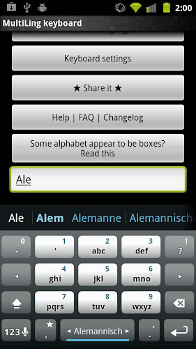 Alemannisch dictionary plugin for MultiLing Keyboard.Please install MultiLing Keyboard along with this plugin.