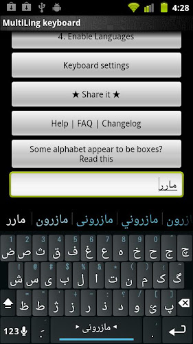 Mazandarani (مازِرونی) nebo Tabari (تبری) Slovníku plugin pro multiving o automatické opravy klávesnice a predikce slovinstrukce: