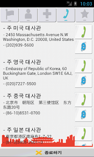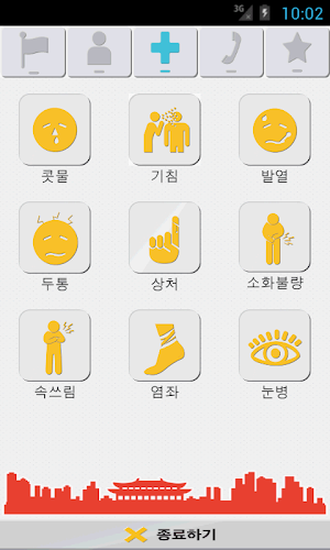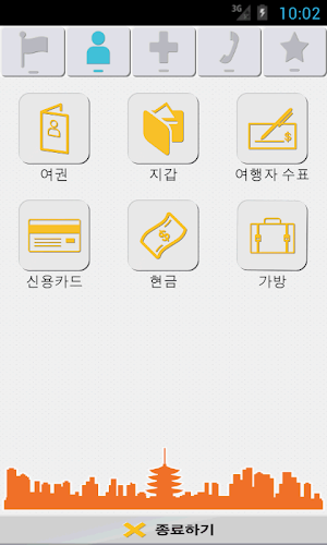 Velvyslanectví se skládá z pěti tipů pro obsah, takže nouzový kontakt, bezpečný pro cestování, takže můžete zobrazit větší obrazovku, dotkněte se obrázků Pictogramu každé kategorie.