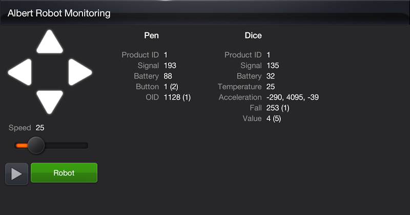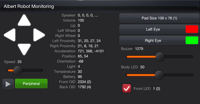 Je možné řídit robota a všechna data robota se zobrazí na obrazovce.