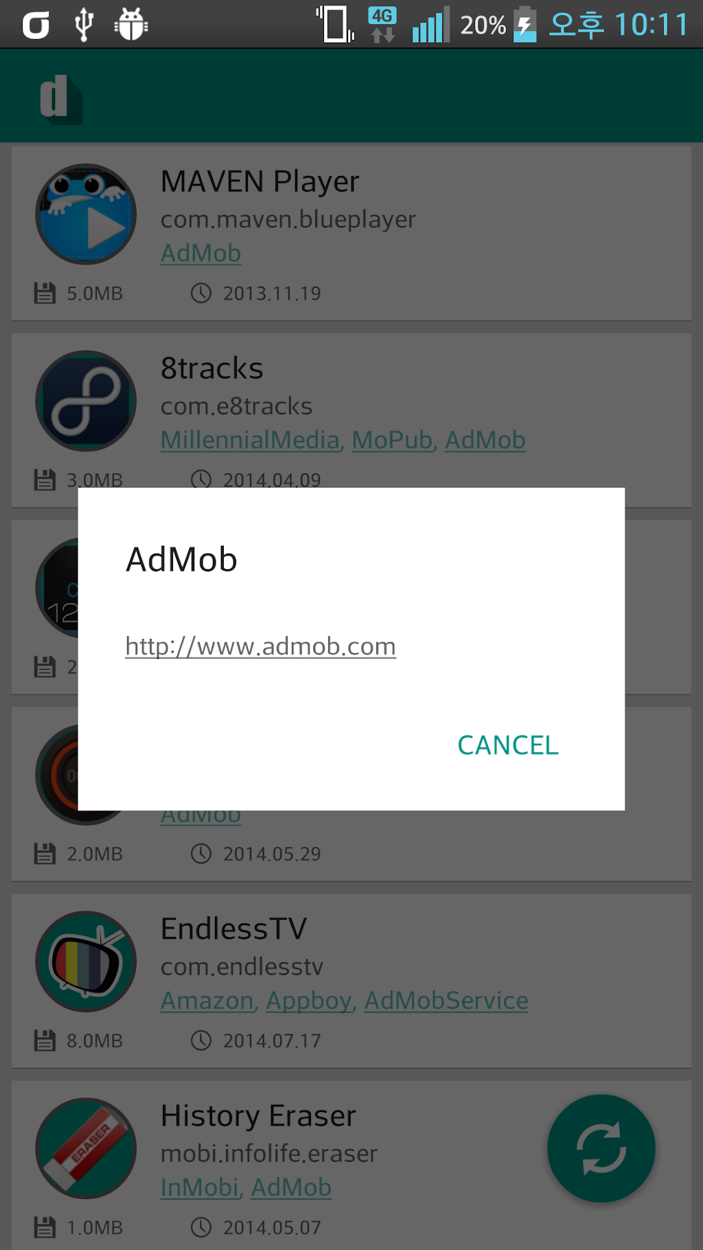 Detektor AD detekuje reklamu používanou nainstalovanými aplikacemi.