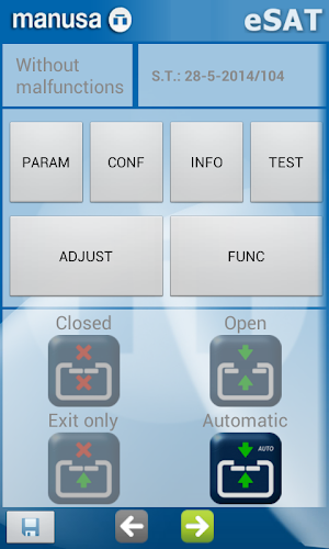 Manusa ESAT umožňuje úpravu a vizualizaci funkčních parametrů automatických dveří ManusaAby bylo možné správně pracovat, musí být „brána Bluetooth“ zakoupena od Manusa