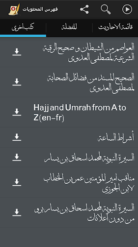 We are astonished by what we saw from the hadiths placed and weak, which are not valid and are denied or developed, and unfortunately, some of them, but many Muslims, publish them or transmit them literally without ascertaining their authenticity, and there are the hadiths that are from the lies and books of the Shiites that the public believes from them and works with it and publishes it and reaches us through the means of technology and others and takes us passion and we help the people We Musí sbírat, Bůh ochotný, největší počet těchto hadísů se šířil (795 hadís) a dal je do vašich rukou s možností hledání s lehkostí pro jakýkoli hadís.V Současné Době Nabízíme Verzi 1.6. Toto Je Naše Nejnovější, Nejvíce Optimalizovaná Verze. Je Vhodný Pro Mnoho Různých Zařízení. Zdarma Ke Stažení Přímo Apk Z Obchodu Google Play Nebo Jiných Verzí, Které Hostujeme. Kromě Toho Si Můžete Stáhnout Bez Registrace A Bez Nutnosti Přihlášení.