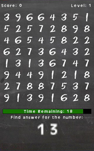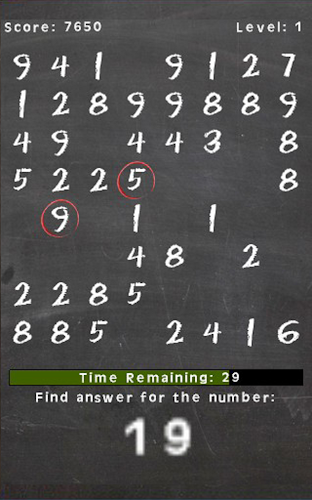 hráč musí k dosažení výsledku vyčistit hrací plochu pomocí libovolné kombinace čísel. čísla 1 až 9 jsou rozmístěna po hrací ploše. hráči musí vybrat několik čísel, aby dosáhli stejného výsledku na obrazovce. jsou potřeba minimálně 2 čísla a více, aby čísla zmizela z hrací plochy. použitá matematická operace je sčítání. například, pokud je potřebný výsledek 9, hráč může vybrat číslo 4 a 5; nebo 3, 3 a 3; nebo 1, 2, 3 a 3. čím více čísel najednou zmizí, tím větší skóre lze získat.