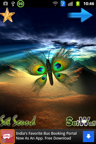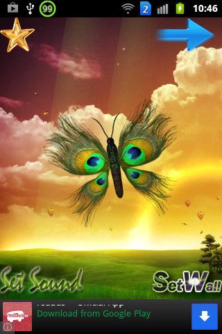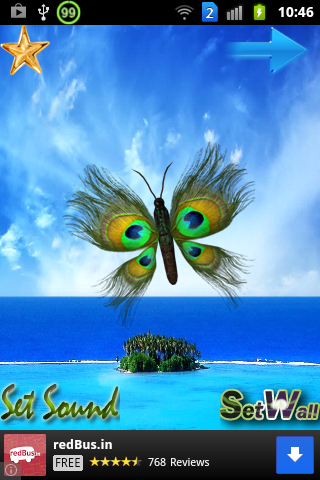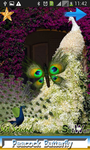 Peacock Butterfly is the amazing and wonderful custom live wallpaper for your mobile handset.In this app you can find beautiful Peacock style butterfly's These butterfly's fly around the mobile screen.And also have an option to set 10 different types of live wall background and also have option set peacock & nature birds on touch the screen. Wear your phone with this spring/rain wallpaper and its colorful butterflies.