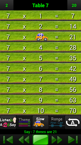vyberte si režim stolů, které se chcete naučit, a řekněte.#}’play’li’:: nech „mluvící stoly“ řeknou řádek tabulky a ty řekni po něm.