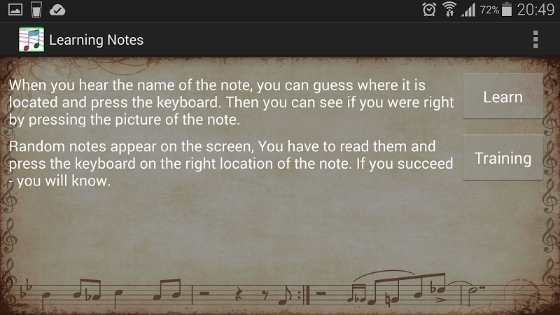 Tato aplikace je ideální pro ty, kteří se začínají učit hudbu (v režimu klíči) a chcete vědět, kde se nachází každá nota.Tato aplikace je určena pro výuku na základních - jak číst noty sami, jako zábavná hra.
