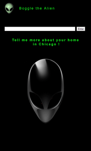 Alien Communication má přímý odkaz na venuskový mimozemšťan, který s vámi bude chatovat asi tisíc předmětů. Mluvit Alien musí být opravdu zkušenosti, aby bylo věřeno!Promluvte si s našimi návštěvníky s touto inovativní aplikací!