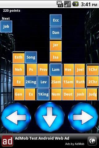 bibletet je velmi návyková hra ovlivněná populární hrou tetris.přidává k tomu výzvu naučit se názvy knih z bible a žonglérské strategie, jak je uspořádat v různém pořadí.
