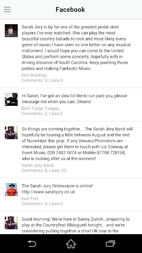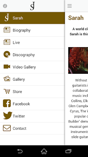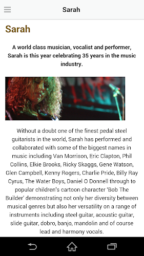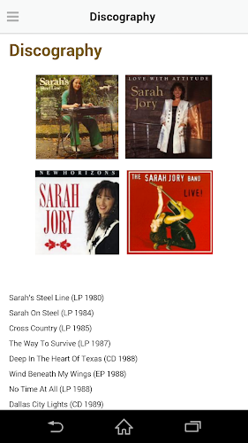 Tato stránka obsahuje informace o připravovaných výstavách a nahrávání a je vybaven audio a video záznamSarah provedení sólo, ve spolupráci a s její ohromující šest kusů kapely. Na stránkách také uvádí zprávy stránek, rozhovory a online galerii.