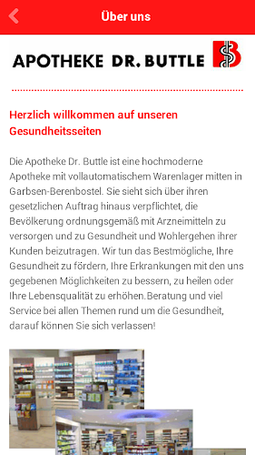 aplikace lékárny dr.buttle in garbsen-berenbostel nejen informovali o nabídce a přizpůsobení služeb, ale také poskytují odborné informace o různých zdravotních tématech.