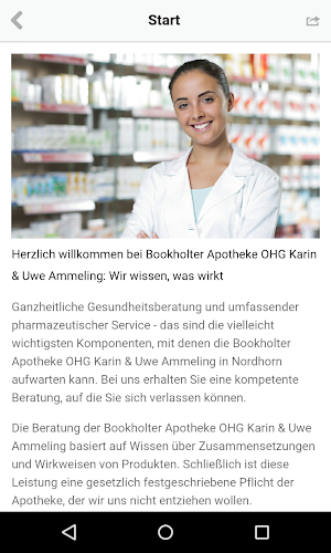 Vítejte v bookholter apotheke ohg karin a uwe ammeling: víme, co funguje, holistické zdravotní rady a komplexní farmaceutické služby – to jsou možná nejdůležitější komponenty, které může bookholter apotheke ohg karin a uwe ammeling in nordhorn nabídnout. S námi získáte kompetentní rady, na které se můžete spolehnout. Rady od Bookholter Pharmacy Ohg Karin a Uwe Ammeling vycházejí ze znalostí o složení a účincích produktů. Ostatně tato služba je zákonem stanovená povinnost lékárny, které se nechceme vyhýbat. Vždy se snažíme nabídnout vám ty nejlepší možné služby pro vaše zdraví. nyní také jako oficiální aplikace!V Současné Době Nabízíme Verzi 1.1.1. Toto Je Naše Nejnovější, Nejvíce Optimalizovaná Verze. Je Vhodný Pro Mnoho Různých Zařízení. Zdarma Ke Stažení Přímo Apk Z Obchodu Google Play Nebo Jiných Verzí, Které Hostujeme. Kromě Toho Si Můžete Stáhnout Bez Registrace A Bez Nutnosti Přihlášení.
