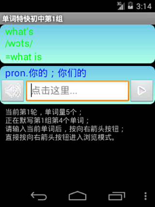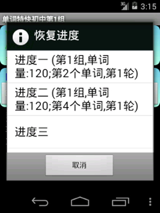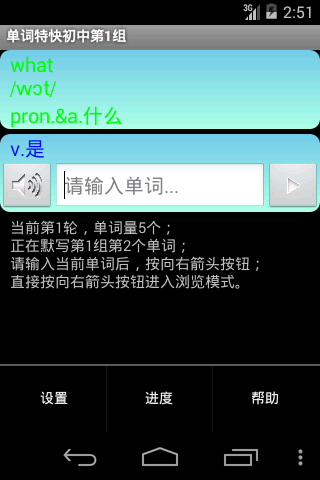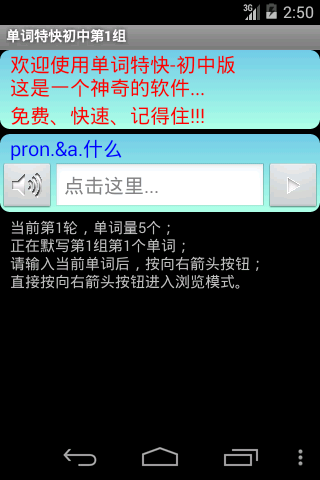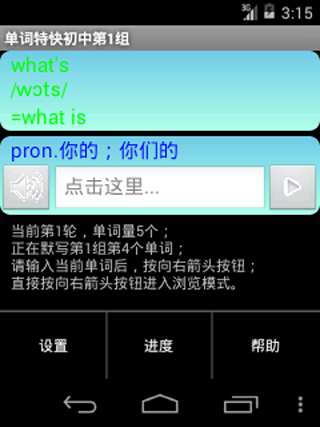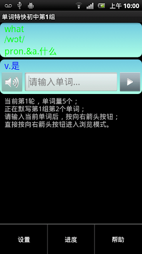 Opravdu vám umožňuje zapamatovat si spoustu slov každý den telefonicky zpět software, který musíte zaplatit pouze za trpělivost, věřím, že musí trvat na návratu [Pokyny]: [Nastavení] Vyberte skupinu, kterou chcete slovo podpořit, Slovo v každé saděsvazek, rychlost řeči, pořadí slov atd.; [Plán], aby vás udržel krok, patří do prvních několika kol, zpět k tomu, co slovo; [Funkce]: Tento software je jedinečný „Vocabulary ve výši čtyř kol zapamatovat si zákon“ v prvním kole: pět