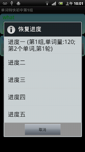sada slov o čtvrtinu celkové částky čtvrtého kola: stanovená částka slov (to je celková přehled o přezkumu Skupina slov, dokončení čtvrtého kola dokončí sadu slov, které se lze učit) v prvním kole je začátek slova na mysli;